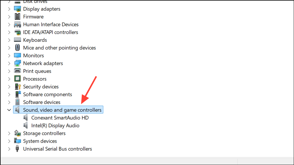 Step 2: Expand Sound, video and game controllers to view your audio device.