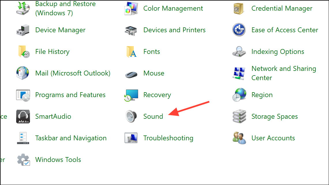 Step 1: Open Control Panel and navigate to Hardware and Sound > Sound.