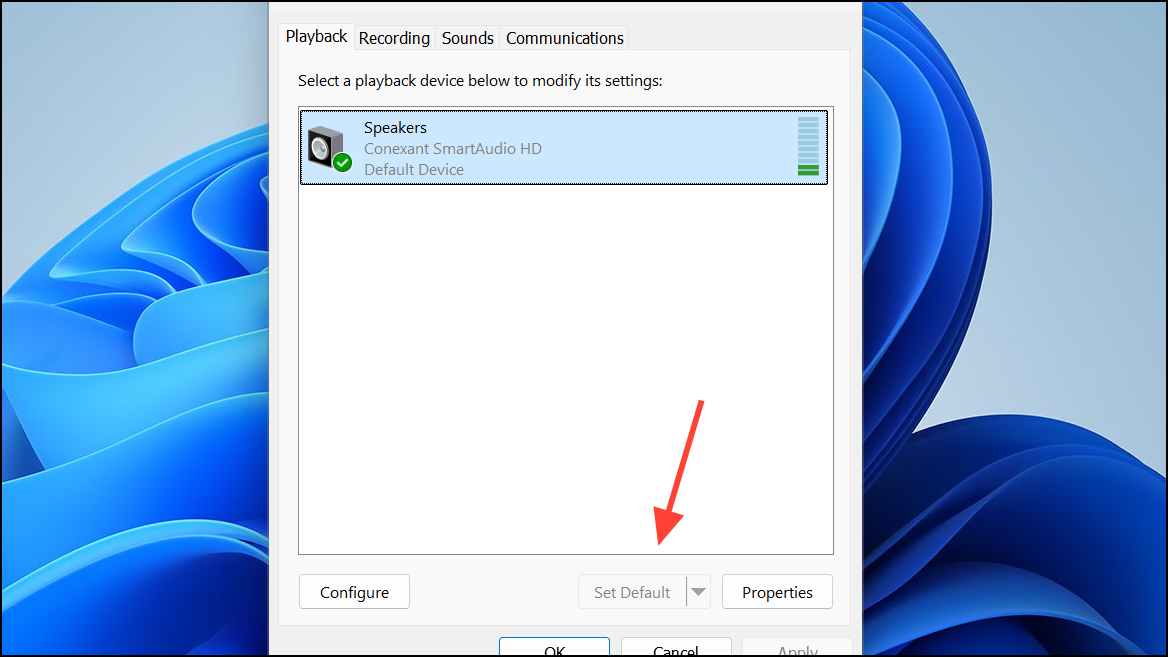Set and Confirm the Default Playback Device