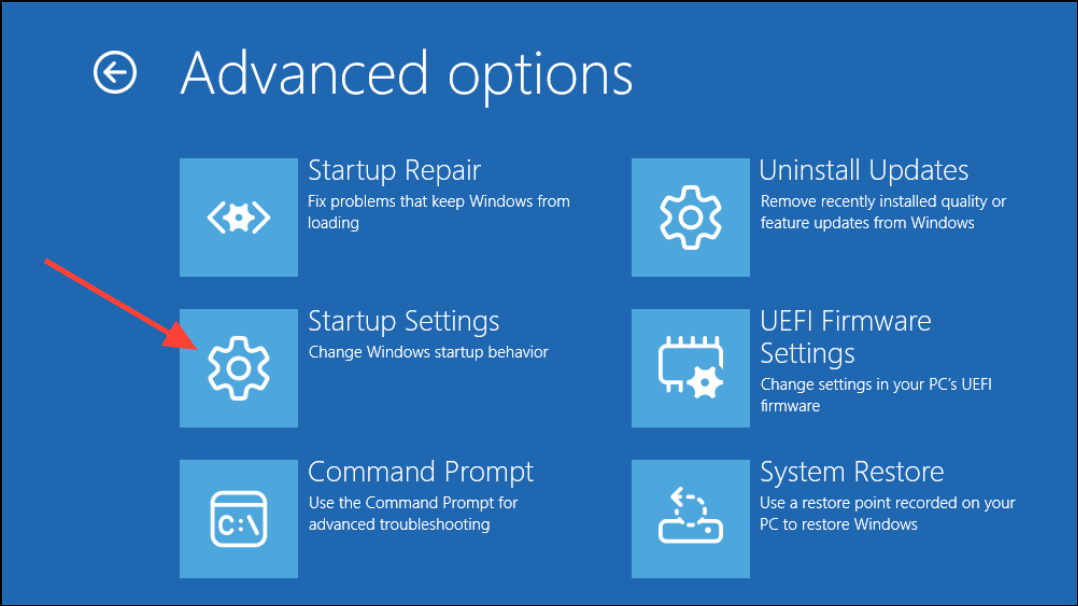 Step 2: Choose Troubleshoot > Advanced options > Startup Settings and click Restart.