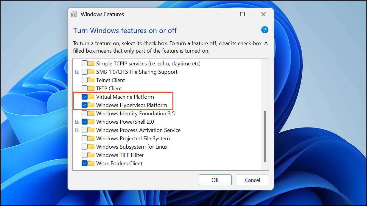 Step 4: After restarting, repeat Step 1 to return to the Windows Features dialog. This time, check Windows Sandbox to reinstall it. Also, ensure the following features are checked: