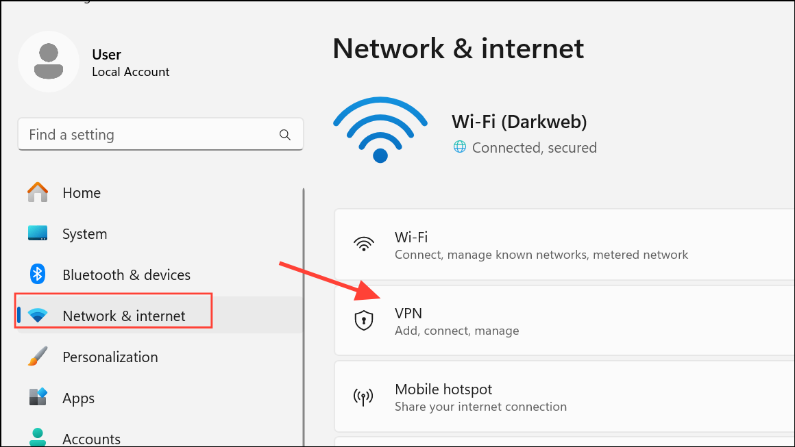 Step 1: Press Windows + I to open Settings. Navigate to Network & internet and select VPN.