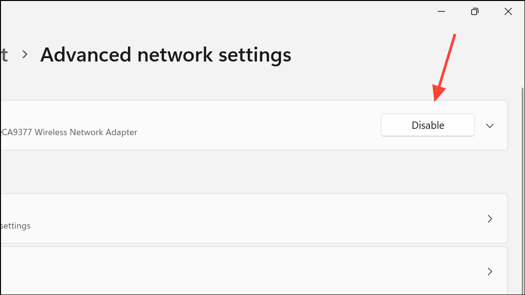 Step 2: Under Network adapters, click Disable next to adapters you do not use (such as virtual adapters from old VPNs or virtual machines).