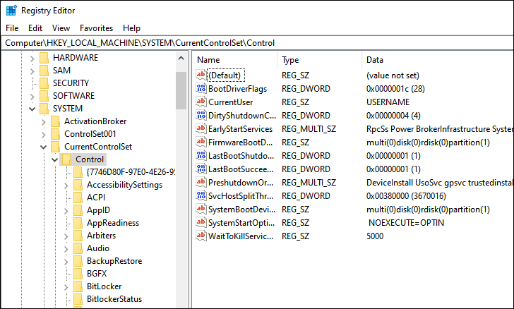 Computer\HKEY_LOCAL_MACHINE\SYSTEM\CurrentControlSet\Control