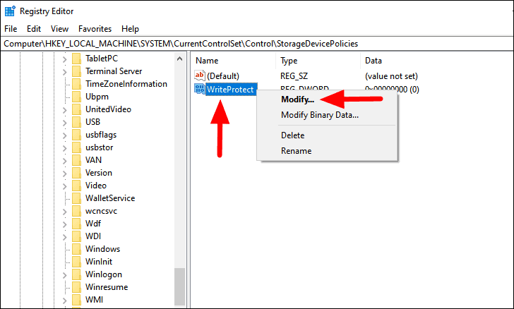 Now, locate the ‘StorageDevicePolicies’ key.
