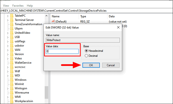 Next, ensure that the ‘Value Data’ has been set to ‘0’. In case, the value is set to ‘1’, change it to ‘0’ and then press ‘OK’ at the bottom to save the changes. If any confirmation box pops up, select the appropriate option to complete the process.