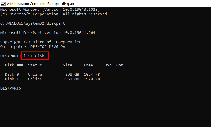 You will now find the various disks on your system listed in the ‘Command Prompt’ with each having a specified number. Note the number of the disk you want to format, enter the next command, and then press ENTER.