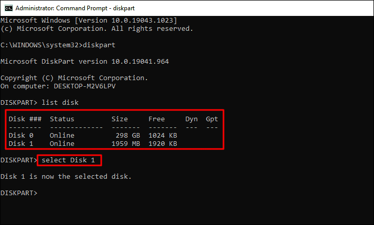 In the above command, replace ‘Disk Number’ with the value entered in the ‘Disk ###’ column for the disk you are going to format. For instance, we will be formatting ‘Disk 1’, thus, the command becomes as follows.
