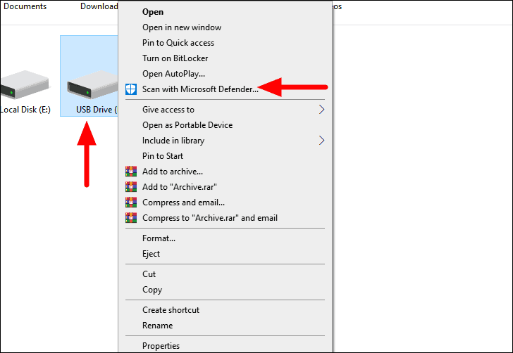 To scan the drive, right-click on it and then select ‘Scan with Microsoft Defender’ from the context menu.