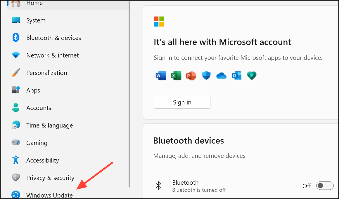 - Open the Settings app and click Windows Update on the bottom left.