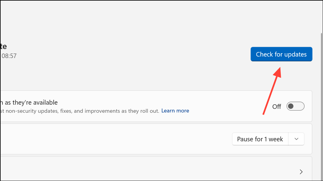 - Click the Check for updates button on the right. Windows will search for updates. If they are available, it will download and install them. You may have to restart your PC before trying to install the wireless display again.
