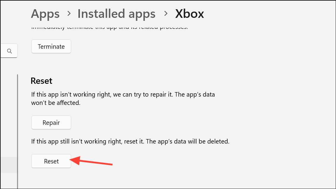 Step 3: Repair and Reset the Xbox app and Microsoft Store. Go to Settings → Apps → Installed apps → Xbox → Advanced options → Repair, then Reset. Do the same for the Microsoft Store. This rebuilds local app data and reinitializes the embedded web runtime used by the Xbox app.