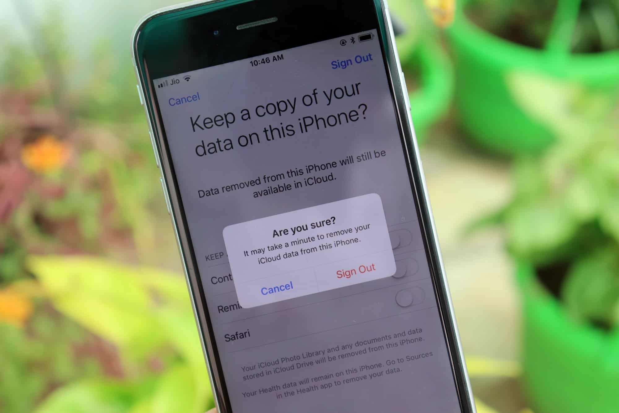 - Before signing out, you’ll get an option to Keep a copy of your data on this iPhone, Turn On the toggle switches for Contacts, Reminders, Safari, and any other services that are shown.