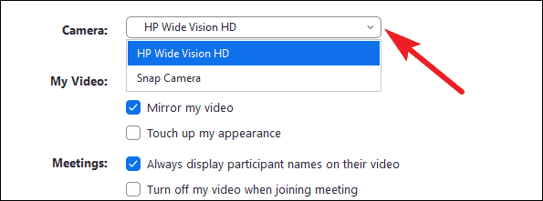 Check whether the Correct Camera is Selected in Zoom