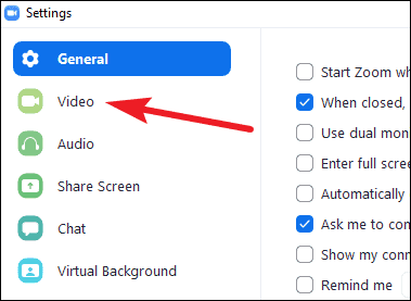 Click on the setting icon to open Zoom settings and then go to ‘Video’ from the navigation menu on the left.