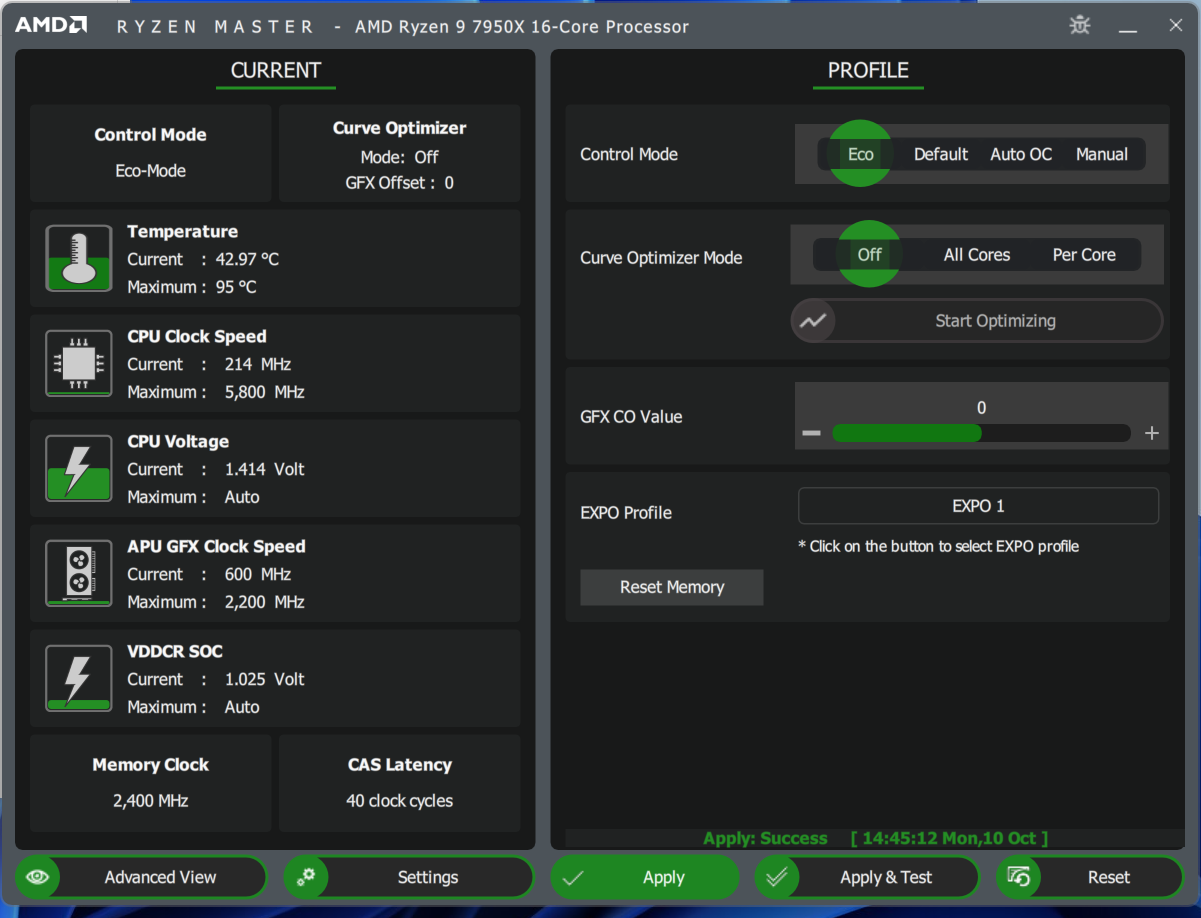 Note: Reducing CPU power slightly with ECO modes usually costs much less performance than the severe dips and freezes caused by repeated thermal throttling.