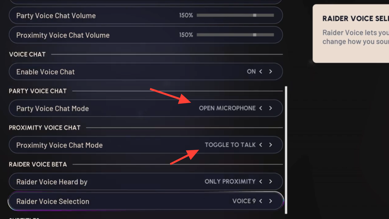 With console-level mutes cleared, Arc Raiders still needs its own options aligned. Party chat and proximity chat have separate modes, and mismatched settings are a common cause of silence.