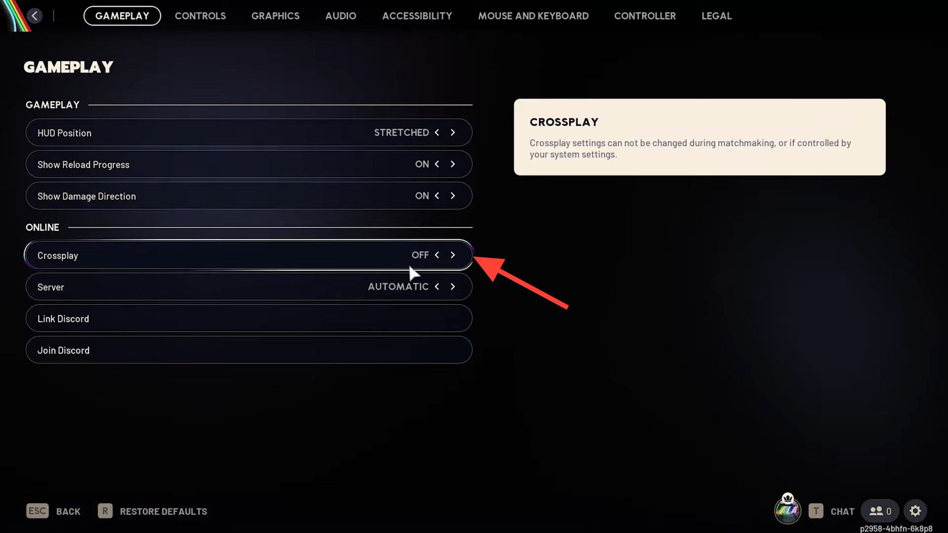 Step 1: In Arc Raiders settings, temporarily turn Crossplay Off and try to queue for a match.