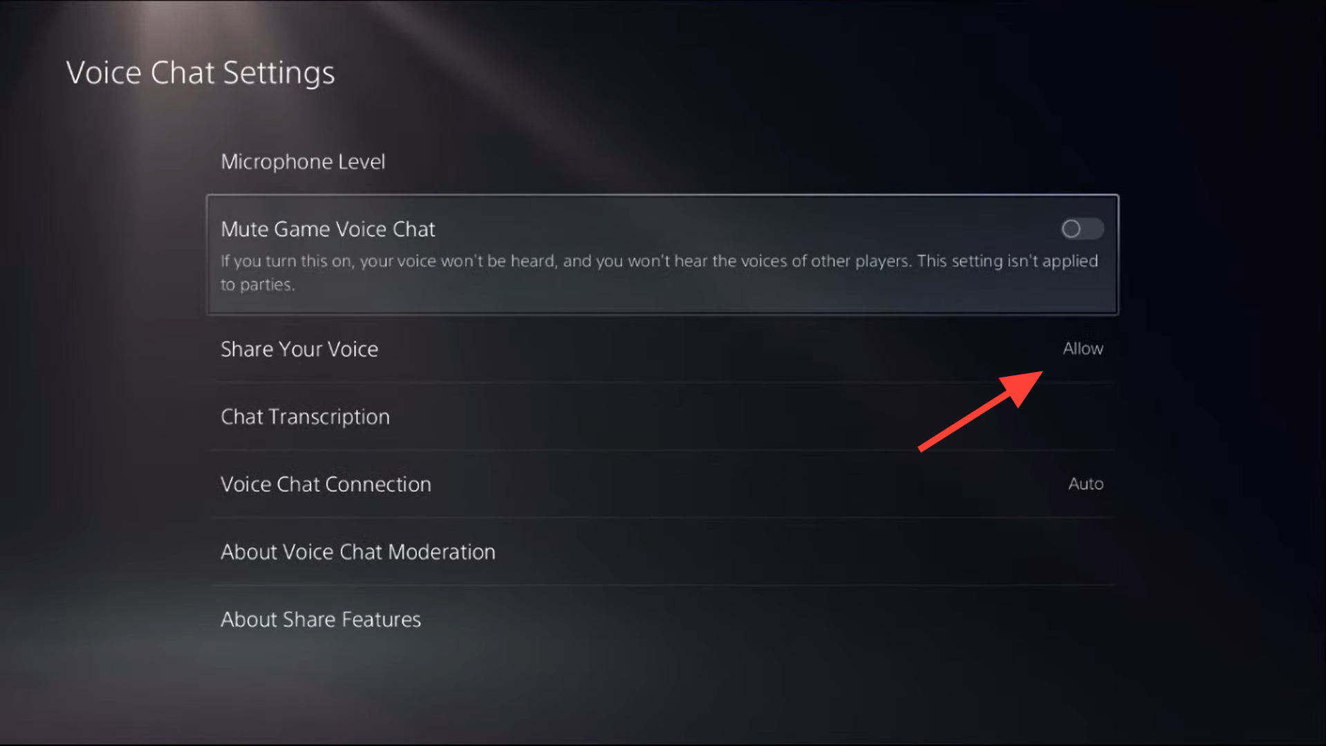 Step 6: Under that, set Share Your Voice to Allow so other players can hear you in-game.
