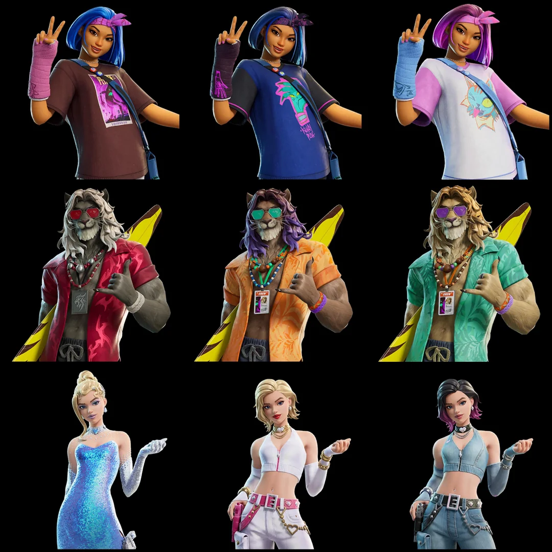 - No mid‑season secret skin: Chapter 7 drops the pattern where a mystery collab skin unlocked halfway through the season via separate quests. All eight outfits are available from day one.