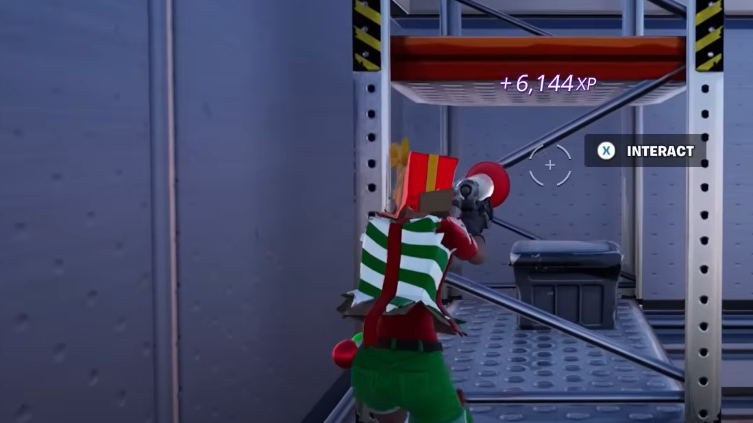 Step 3: While standing in front of the present, use any emote for a moment, then cancel it. A small “secret” button appears on or above the present; interact with it to teleport to a hidden XP room.