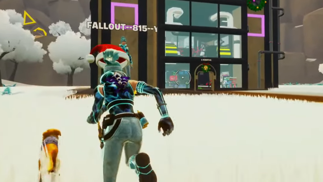 Step 2: After loading in, locate the large tree in the center of the map. Move underneath the tree and stand on the side that has a small present box nearby.