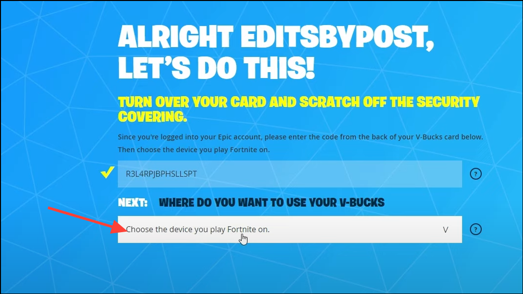 Step 2: Enter the V-Bucks code, choose the platform for delivery (e.g., PlayStation, Xbox, Switch, PC), and confirm.