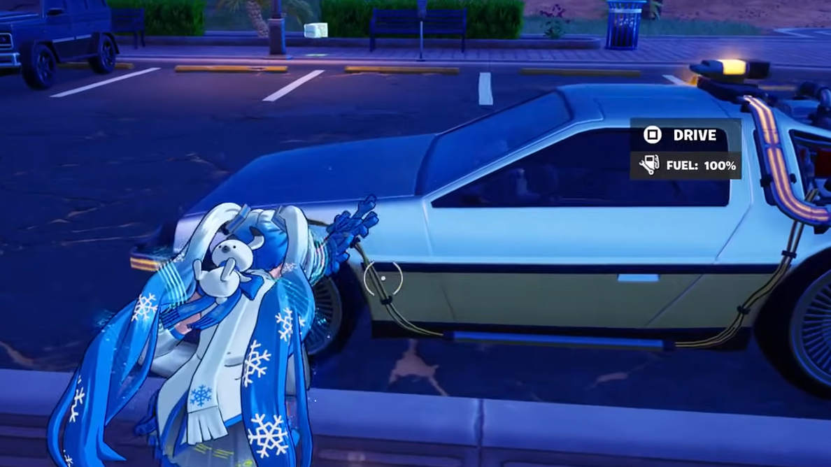 On the live Chapter 7 map, though, ownership of cosmetics does not affect where the physical DeLorean spawns or how its time‑jump works. Every player interacts with the same mythic vehicle behavior regardless of locker content.