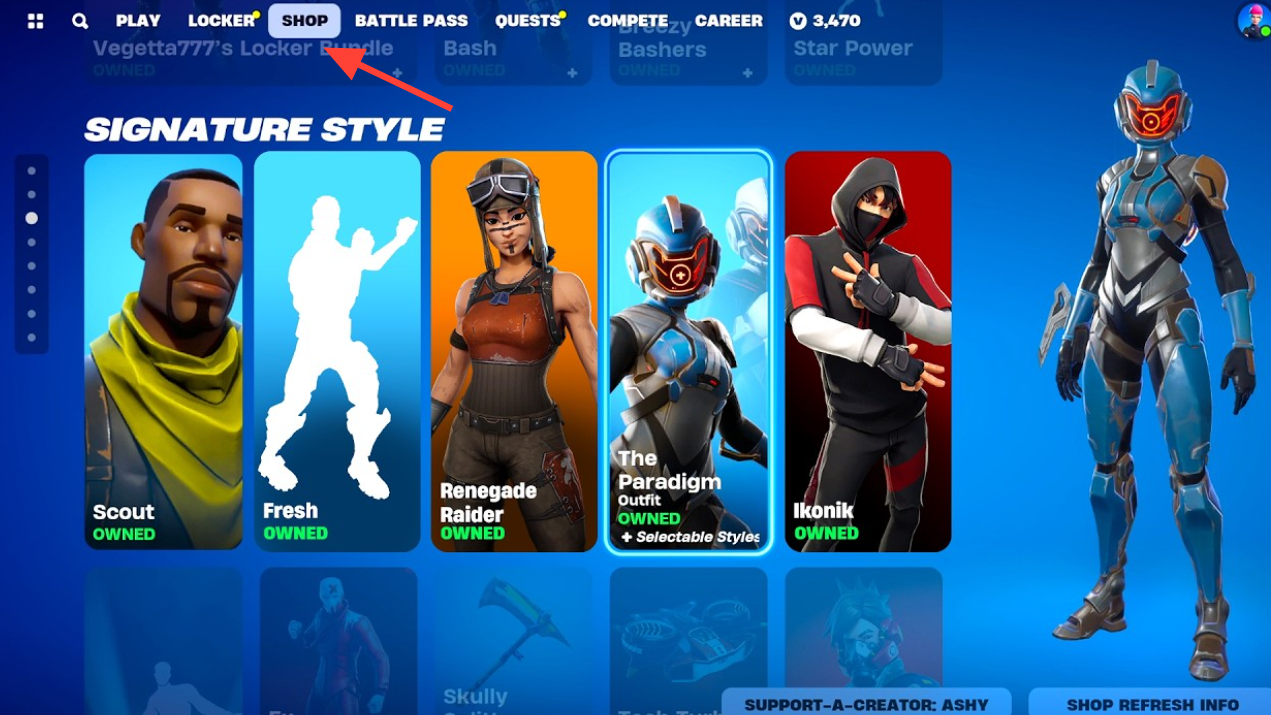 - Go to the Item Shop from the main lobby.