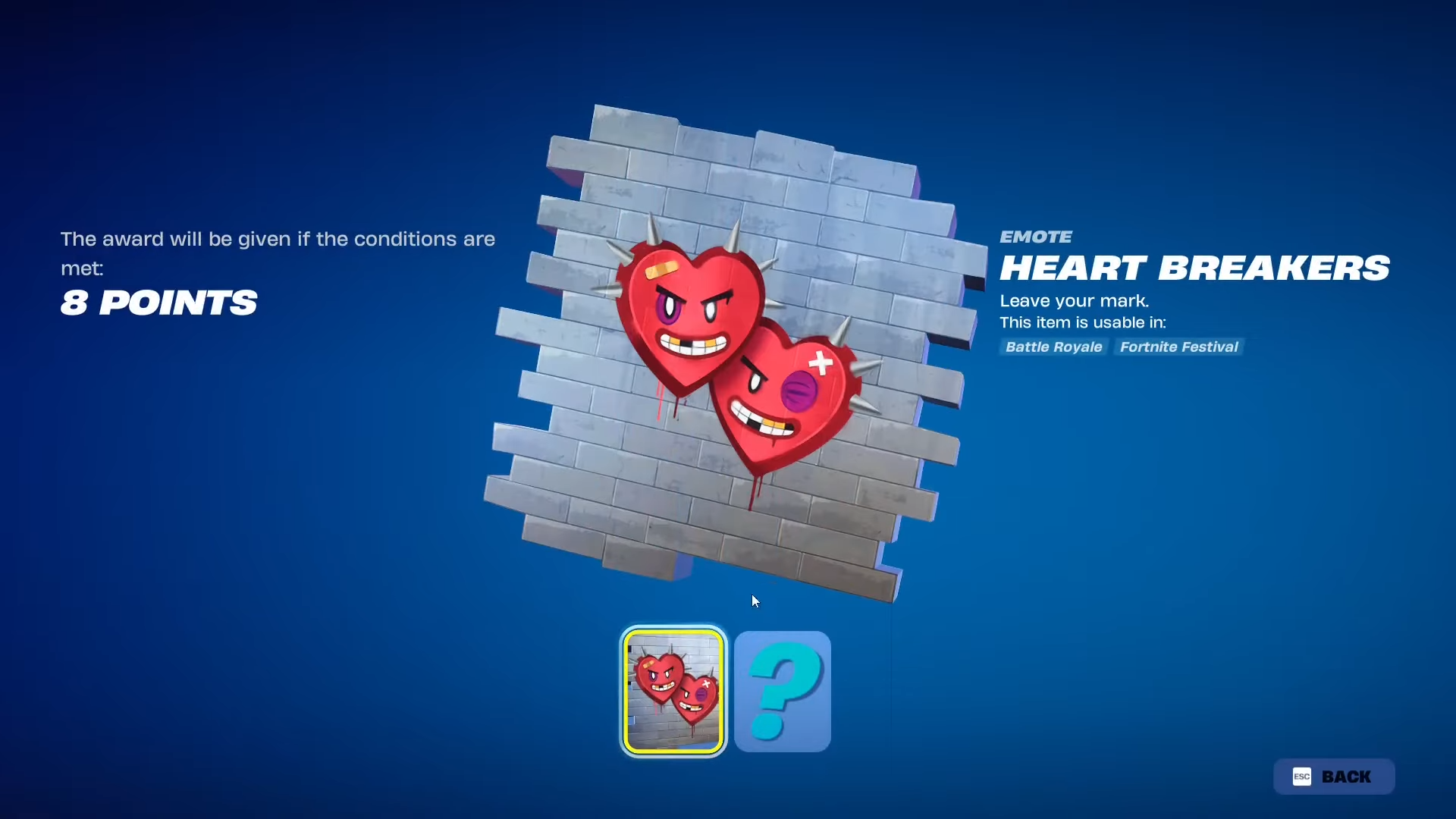 - Heart Breakers spray – an in-game spray granted for reaching a small point threshold.
