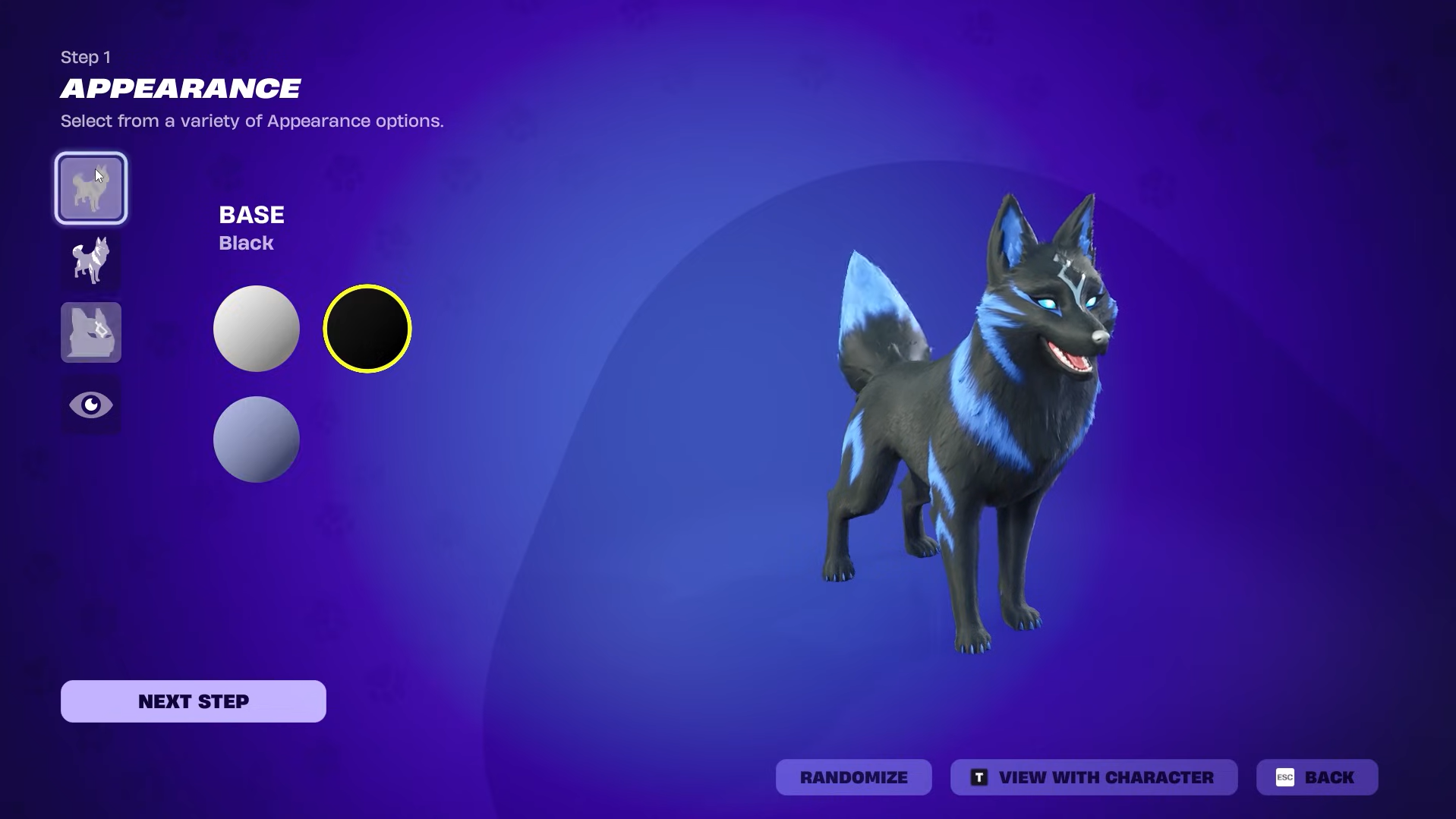The base fur color and accent combination can loosely mimic the original back bling’s classic Rift Storm, Snowstorm, and dark variants, though the model itself has a more realistic style than the original pet. Many players use Black fur with Blue or Silver accents to echo the darker Fox Clan look, while White with Pink echoes the lighter style.