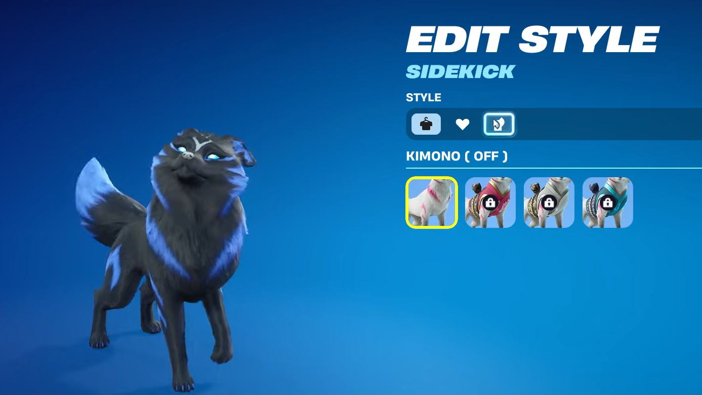 The current Sidekick system only lets you finalize your configuration once per Sidekick. After choosing a fur color, accents, eyes, and kimono, you cannot cycle between presets later without owning additional copies of the same Sidekick variant from the shop.