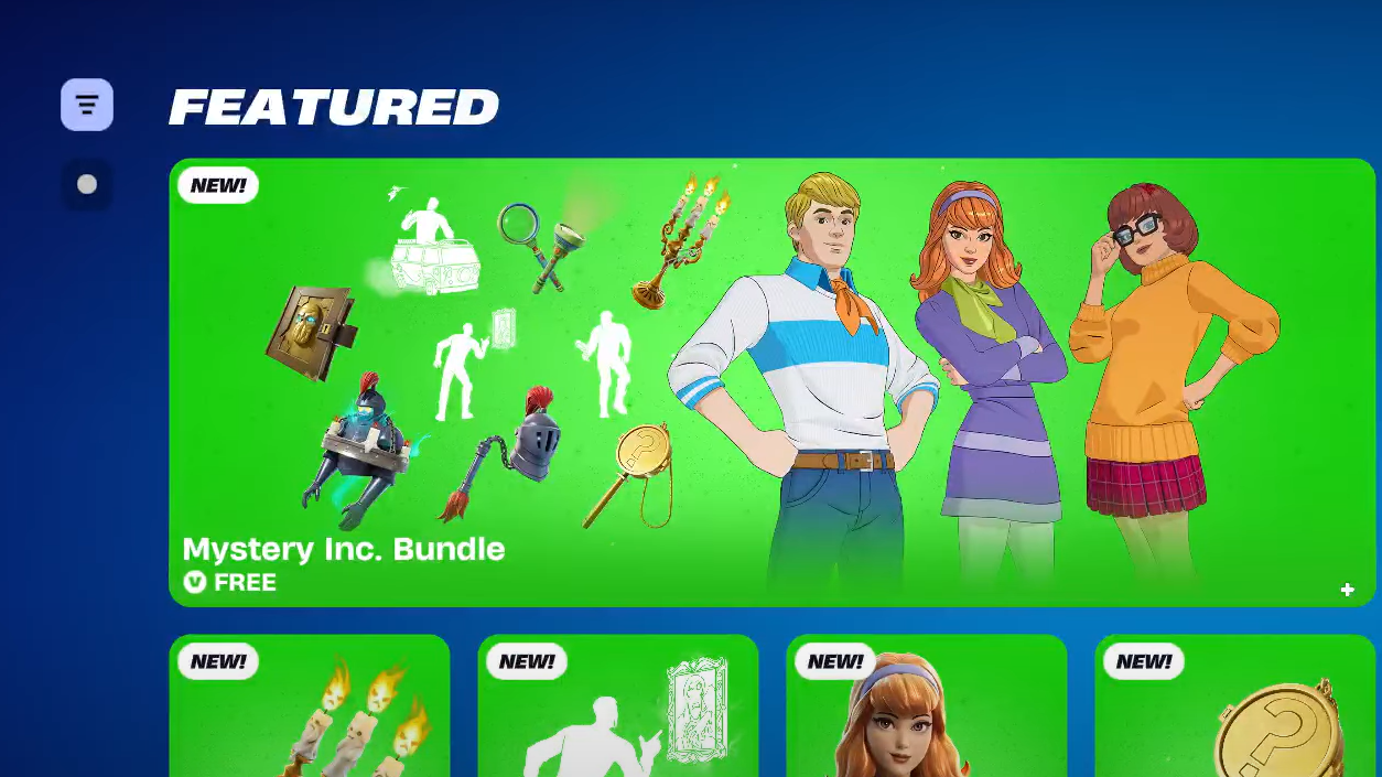 | Mystery Inc. Bundle | Oct 18, 8:00 PM | 3 Outfits, 2 Pickaxes, 2 Back Blings, 1 Back Bling/Pickaxe combo, 3 Emotes, 1 Instrument | Cel‑shaded style option expected |
