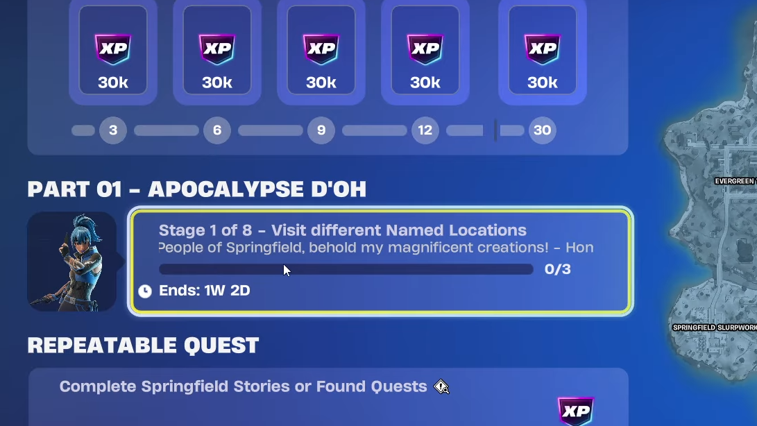 The Simpsons season also layers in Hidden Gag milestones, Lost and Found loops, Kickstart and Weekly quests on top of Springfield Stories, all feeding the same XP bonuses. Completing clusters of three story or Lost and Found quests keeps delivering 30,000 XP until you’ve cleared 30 of them, so finishing the four parts of Springfield Stories is one of the fastest ways to climb the mini-season’s battle pass before Springfield disappears.