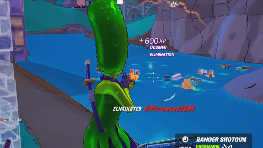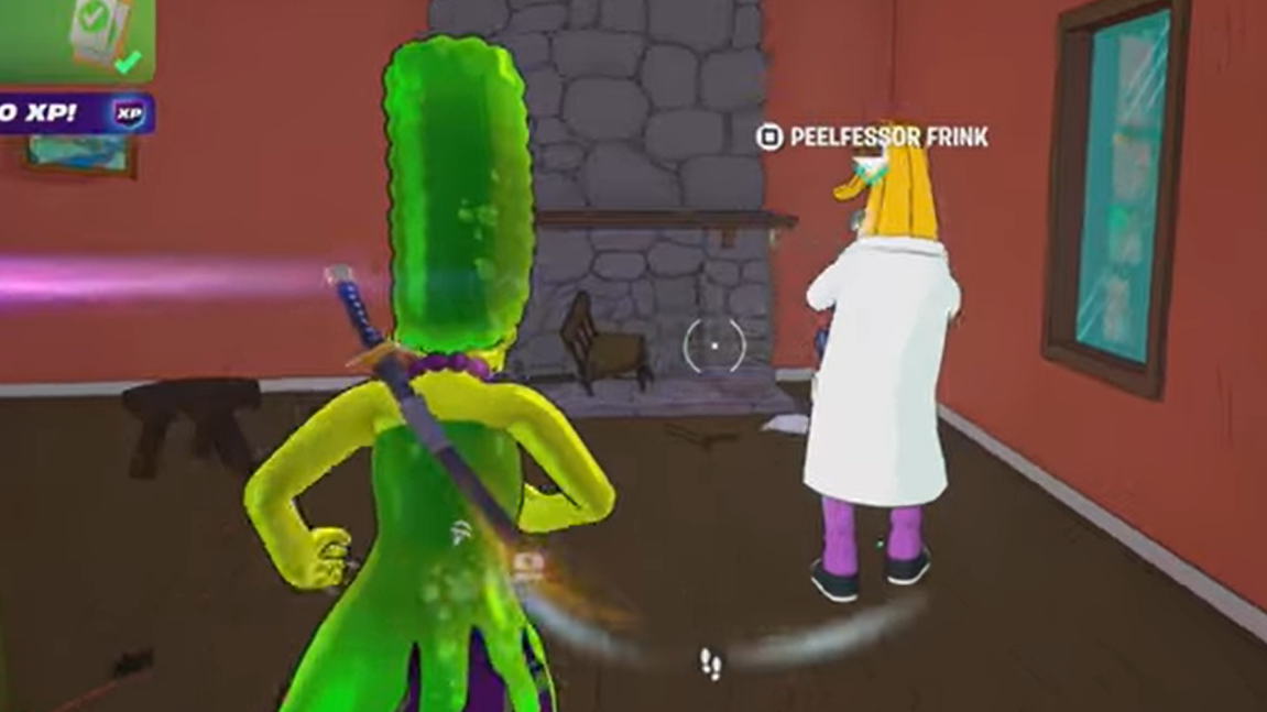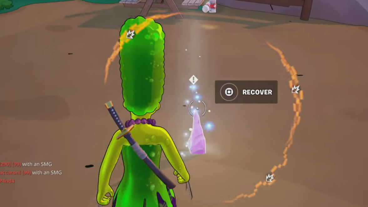 Before shooting starts, you need to emote near any Simpsons boss: Evil Homer, Witch Marge, or Krusty the Clown. They roam and do not spawn every match, so expect to search: