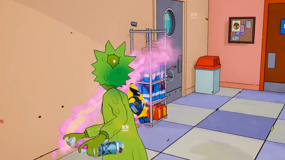 - Pick up any produce items inside the restaurant (apples, burgers, other consumables) and throw three of them while still inside Krusty Burger or Lard Lad.