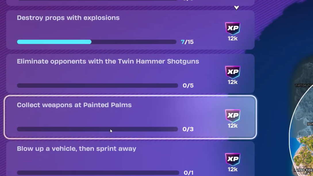 Step 1: Land in or near Painted Palms and focus on finding shockwave grenades from chests, floor loot, and supply containers. Since shockwaves appear frequently, you usually only need a short loot route before you are ready.