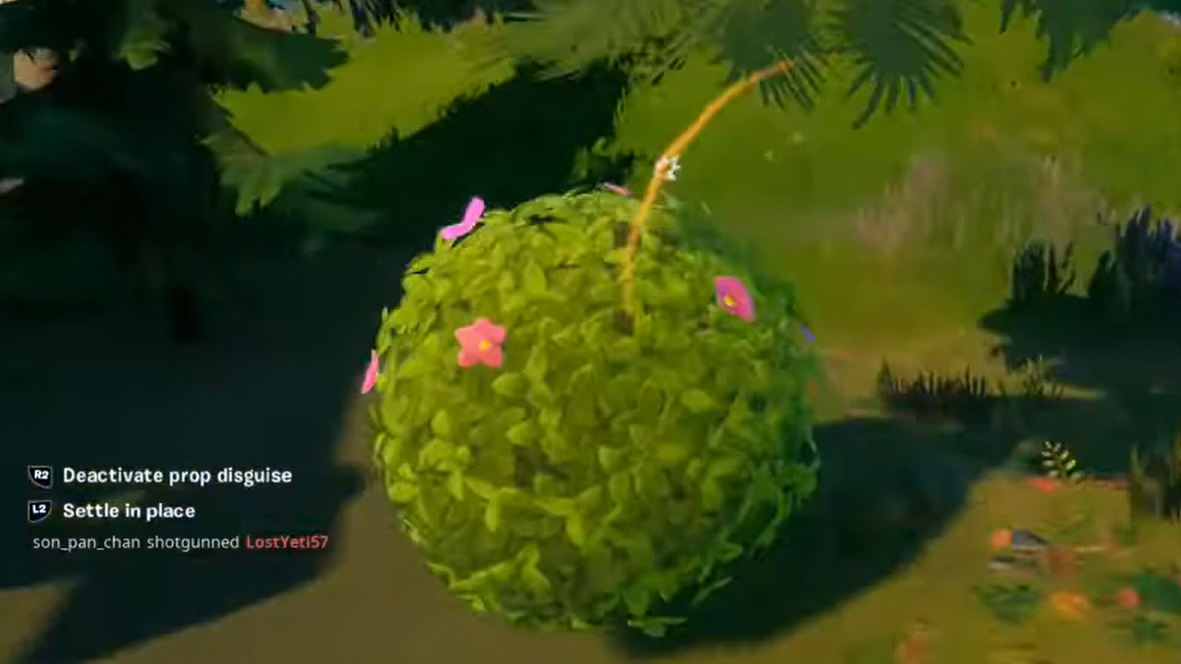 The Bush was originally designed as a stealth item. Crouching while wearing one makes you look like a natural part of the environment, and in the right terrain, you can genuinely fool opponents who aren't paying close attention. Standing still in a grassy field or near other foliage is where the disguise works best.