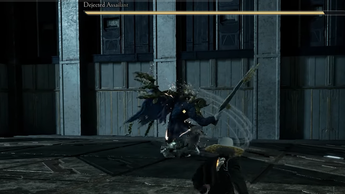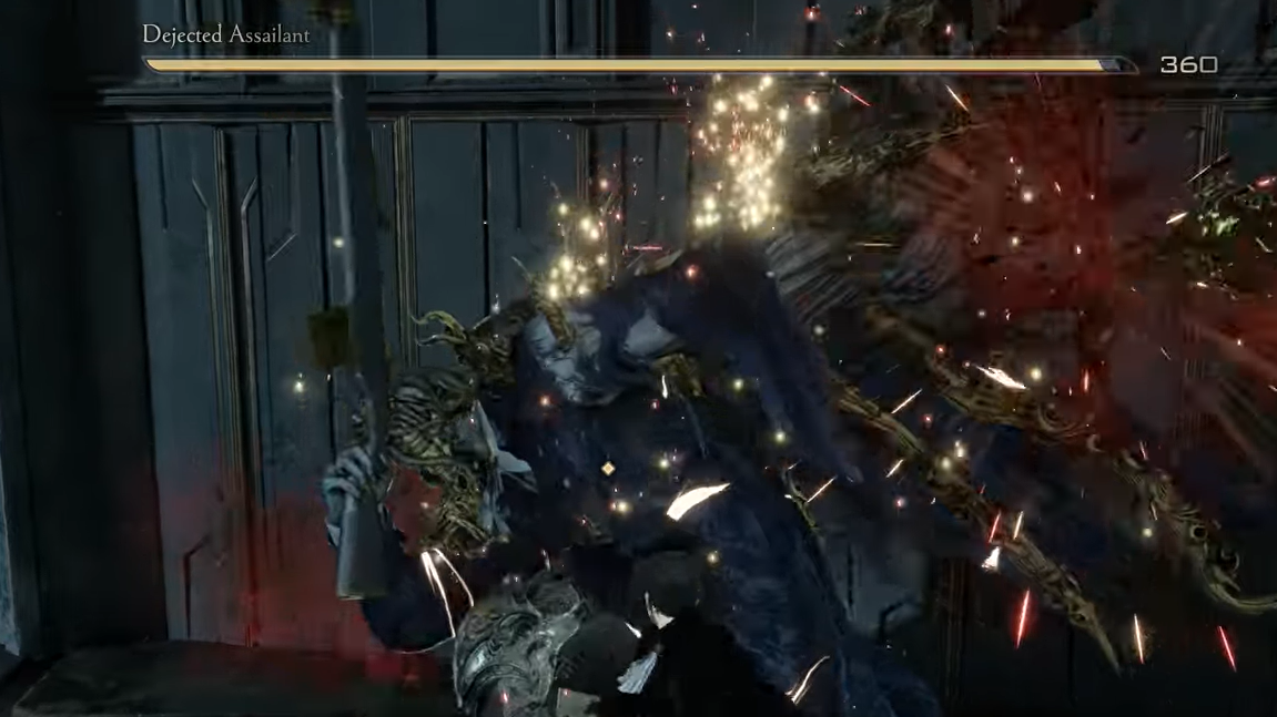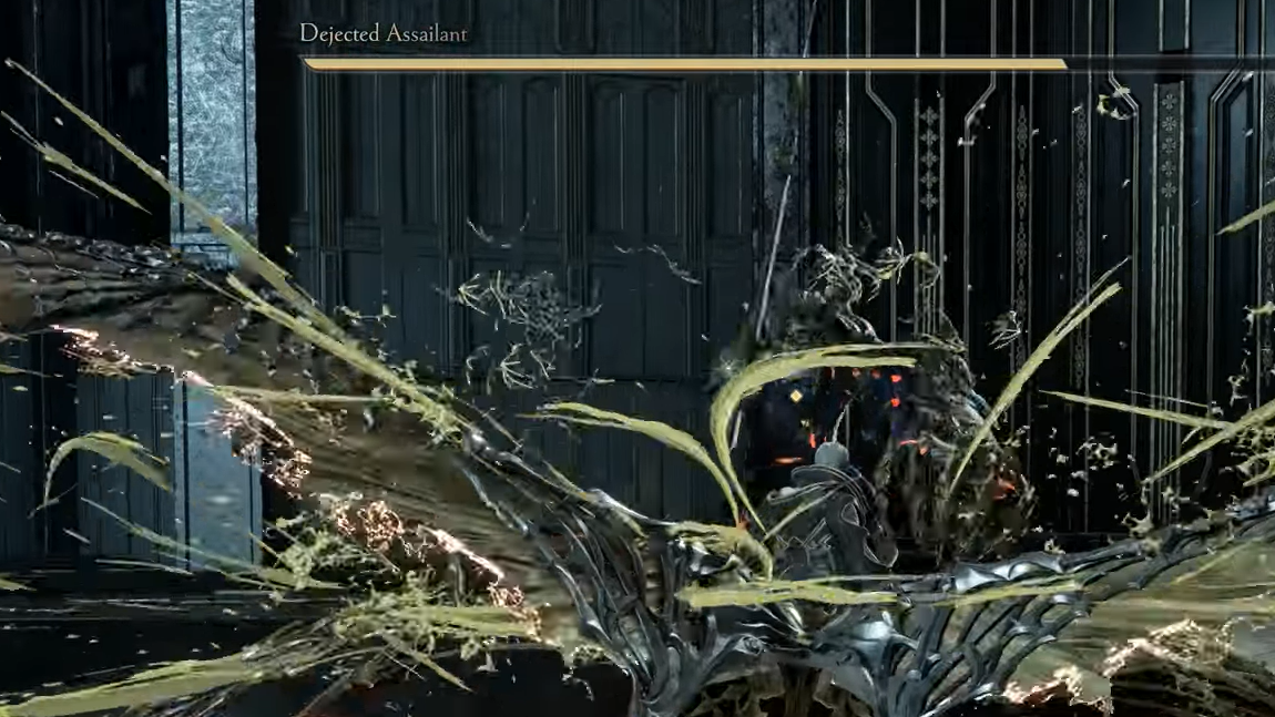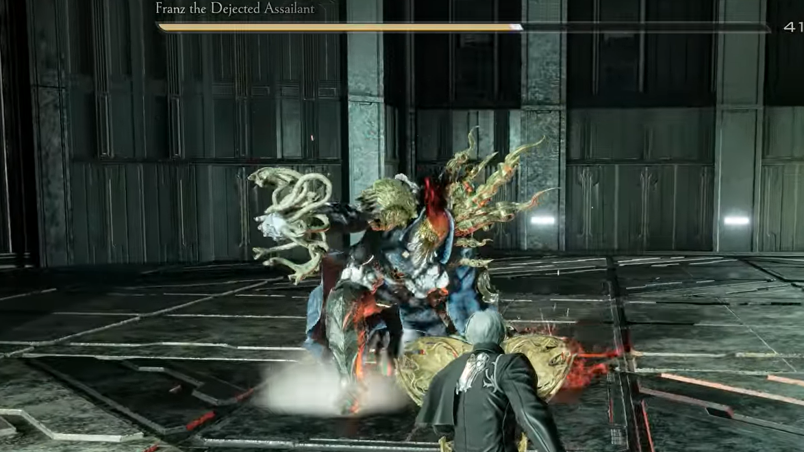 Franz transitions once his health drops to roughly 60–70 percent. A cutscene plays where he decapitates himself, and the UI name changes from “Dejected Assailant” to “Franz the Dejected Assailant.” That cinematic is the clear state change for the boss logic.