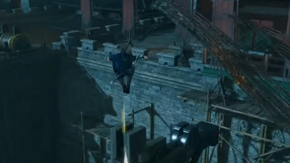 - Rooflines and catwalks: The path winds over roofs and scaffolding, with conversations below revealing that a woman (Yingying) has refused to talk and is being “sent to a dungeon of the God of Fortune” on Captain Jin Huo’s orders.