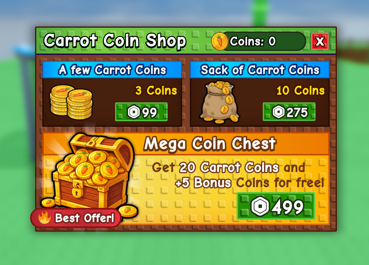 - Mega Coin Chest with 25 Carrot Coins for 499 Robux