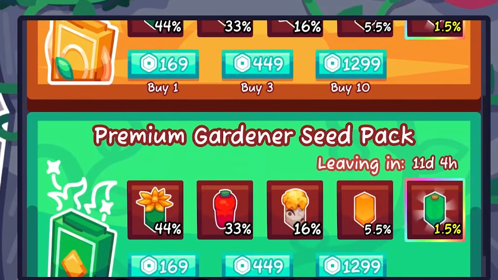 Buying the Gardener Seed Pack With Robux