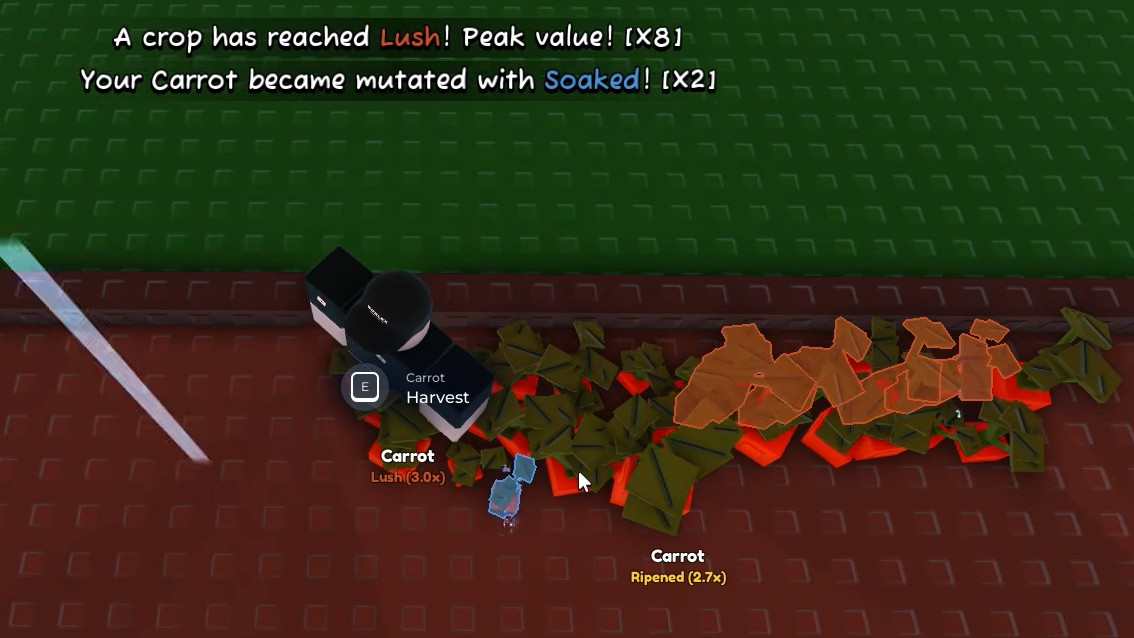 Every crop in Garden Horizons passes through three ripeness stages: Unripe (roughly 1.1× base value), Ripe (moderate boost), and Lush (a full 3× multiplier). Harvesting anything before it hits Lush is leaving money on the ground. Common crops like carrots reach Lush in about a minute, so the wait is trivial. Rarer plants such as Dawn Fruit or wheat take considerably longer — wheat needs around 10–12 minutes just to finish growing, and then additional time to ripen fully.
