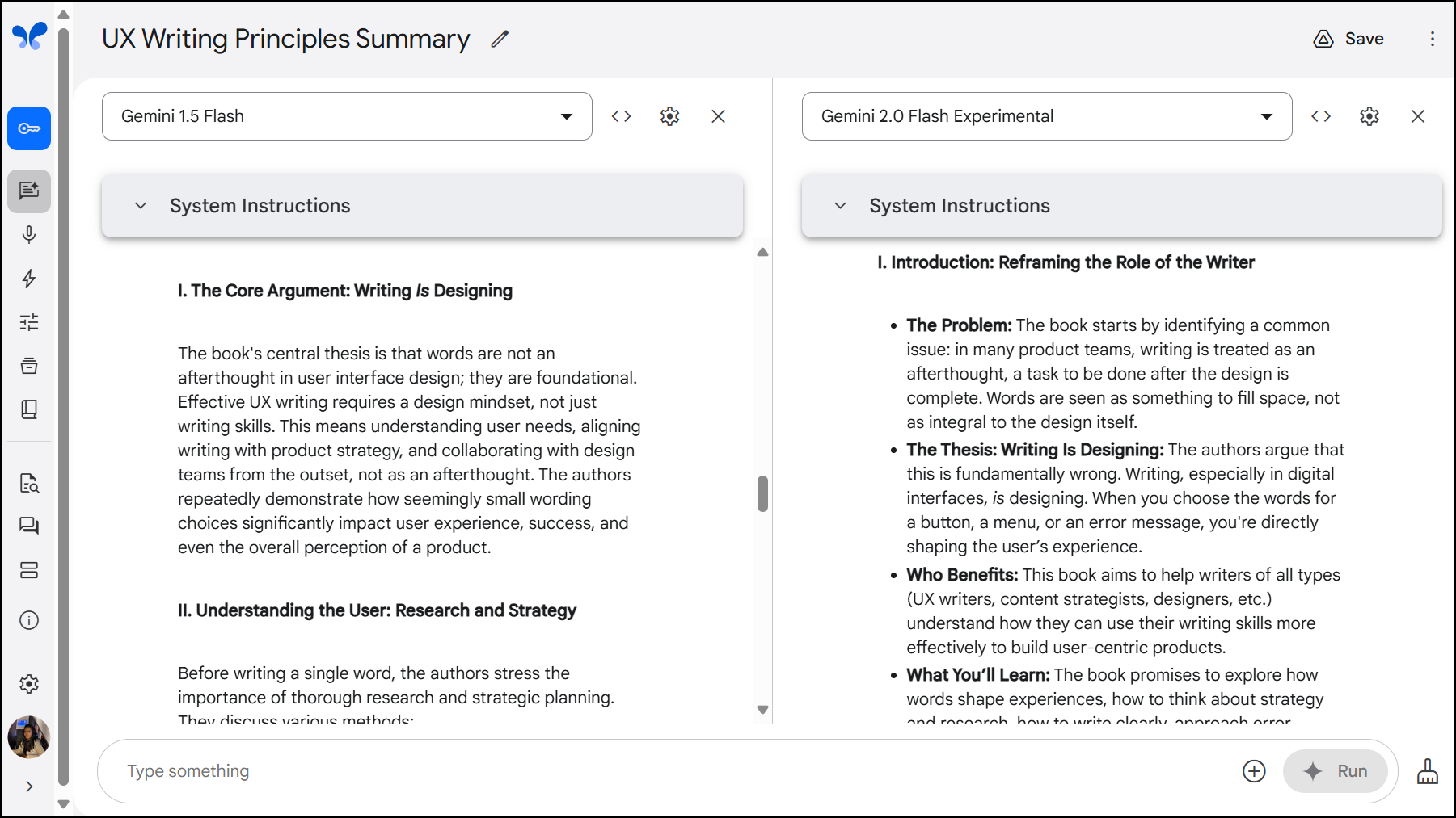 Even with a more detailed prompt giving precise instructions, Gemini 2.0 provided better summaries than Gemini 1.5.