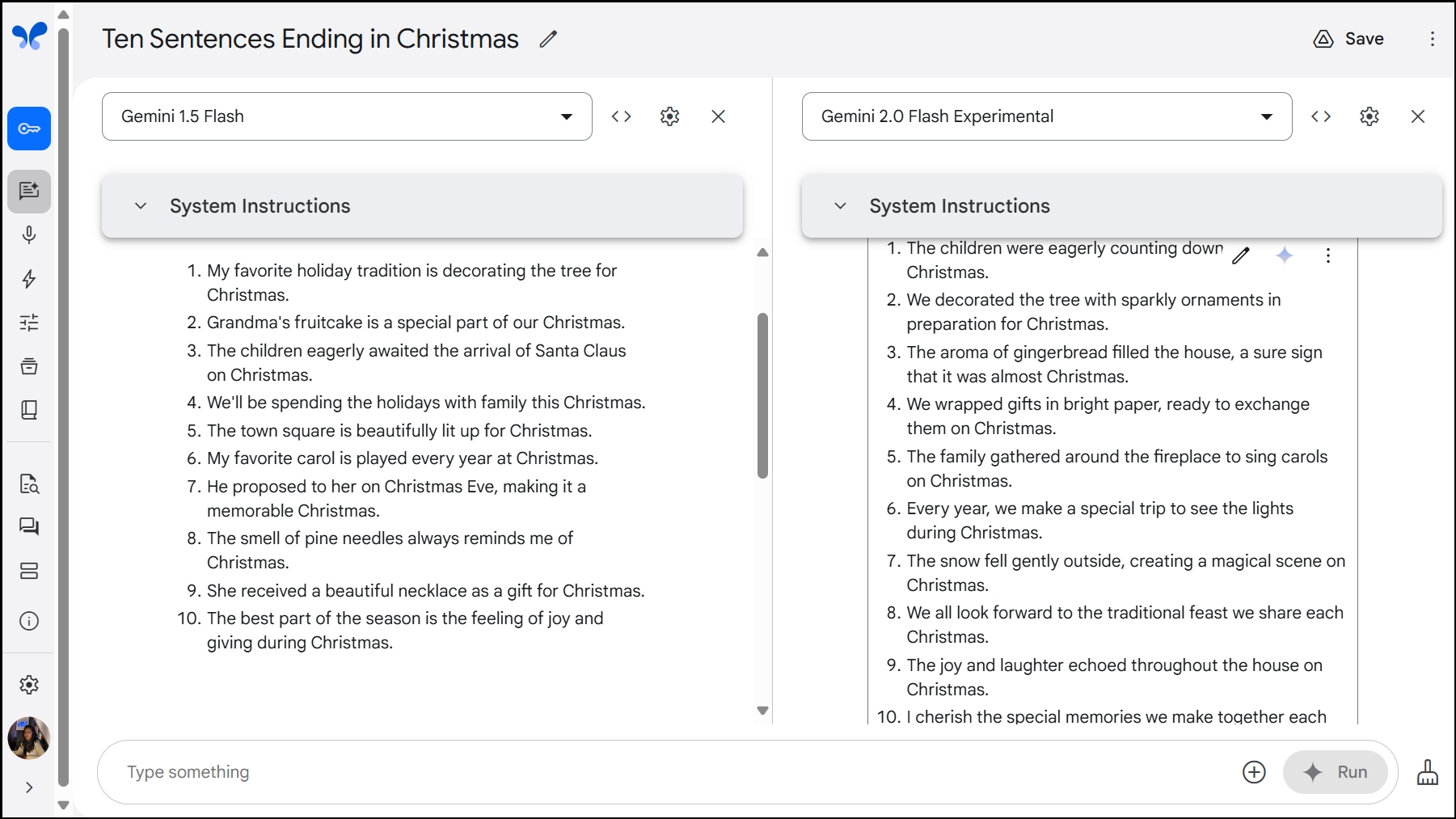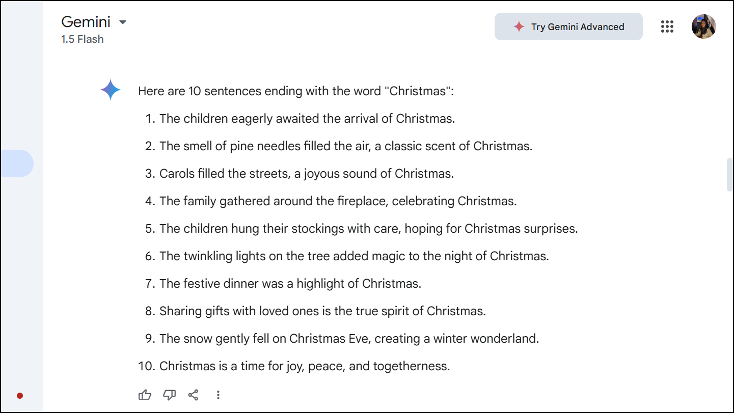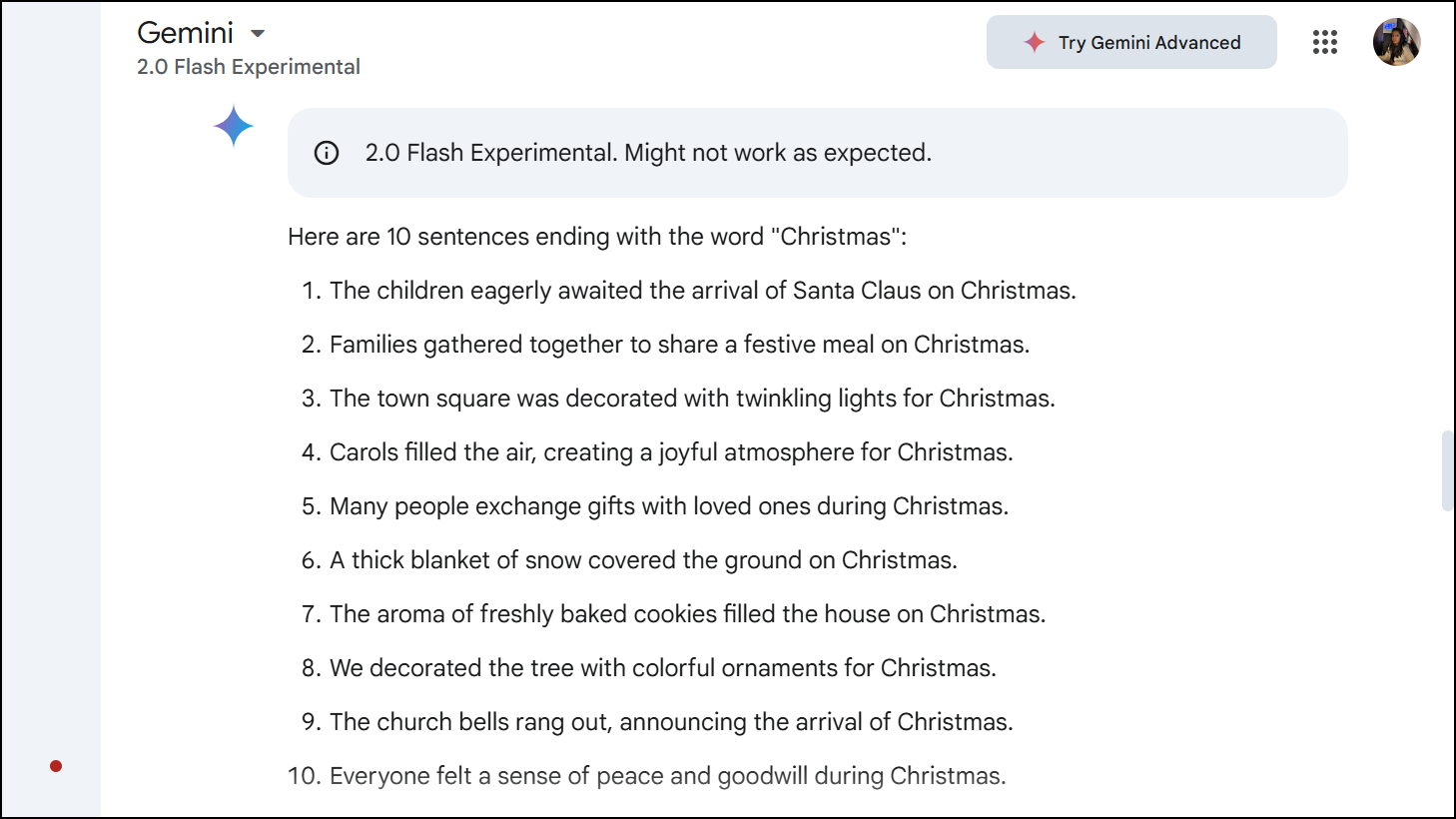 However, when using the Gemini interface, only Gemini 2.0 Flash performed admirably and ended all 10 sentences with the requested word.