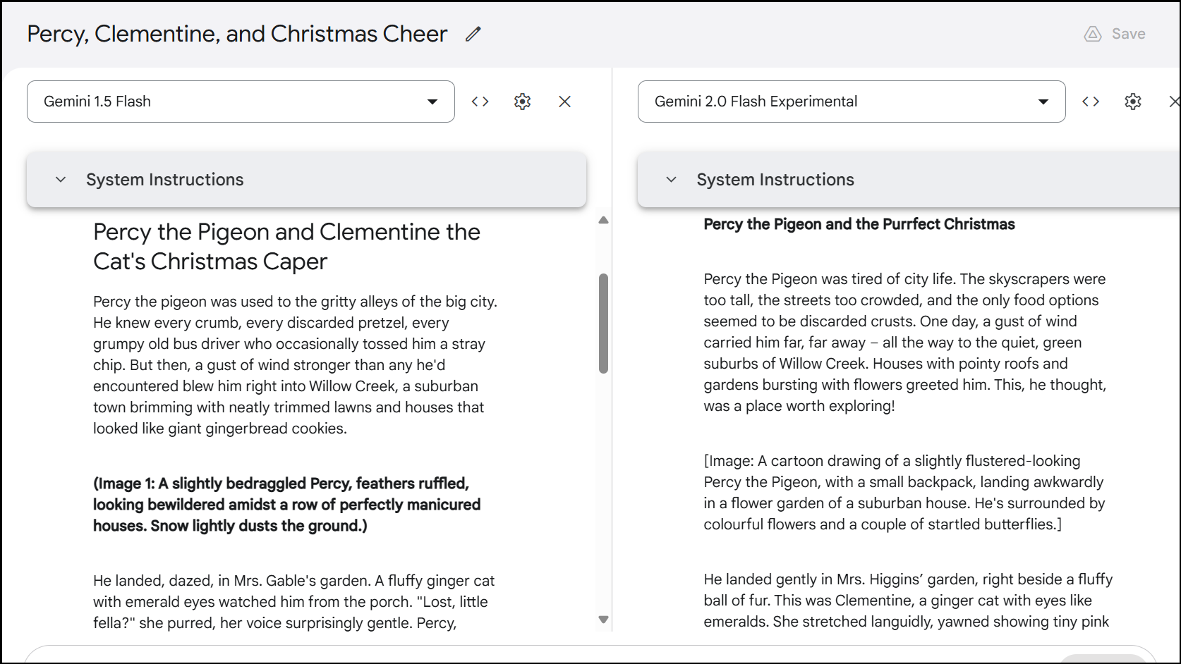 While both the stories were bad, the one by Gemini 2.0 was still better than Gemini 1.5. The model again tried to make the story engaging by incorporating some dialogue. However, the plot line for both left a lot to be wanting.