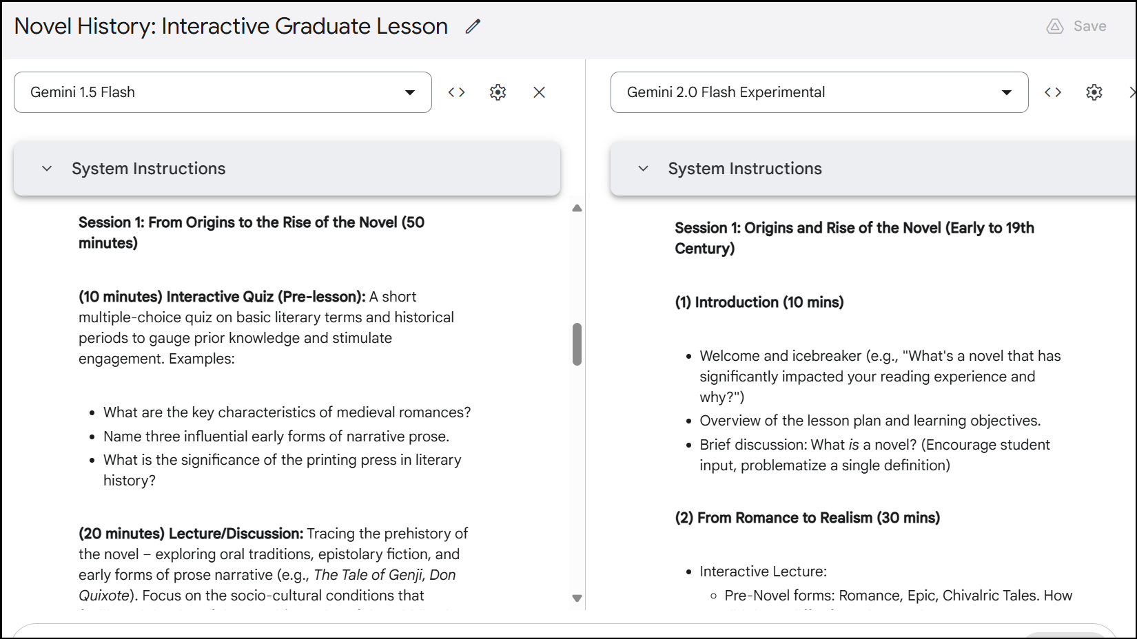 Both the models came up with a usable plan but Gemini 2.0 did go the extra mile and created a lesson plan that was more in-depth. It understood the assignment and incorporated extra visual aids and quizzes in the lesson plan to make it more interactive.