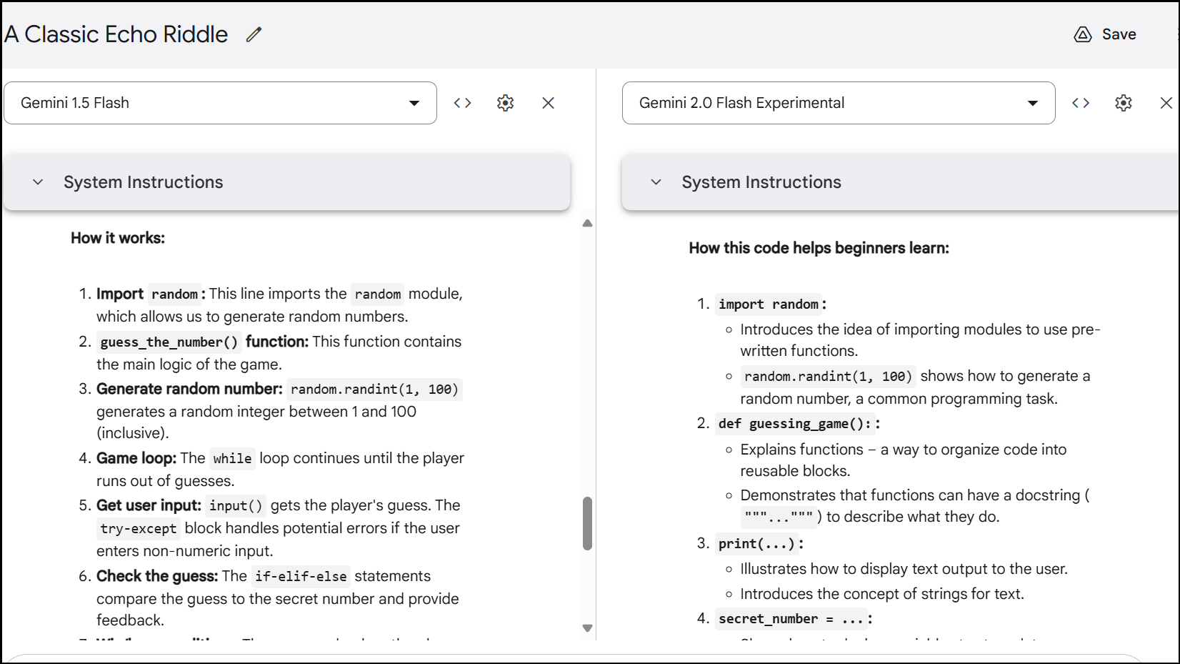 But Gemini 2.0 gave a better explanation of how the code works, how to run it, and what steps should the person take next as a beginner to learn more.