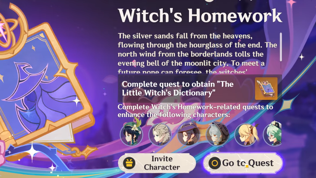 Completing “Witch’s Homework: Solution” also gives you a one-time choice of a free 4‑star Hexerei character.