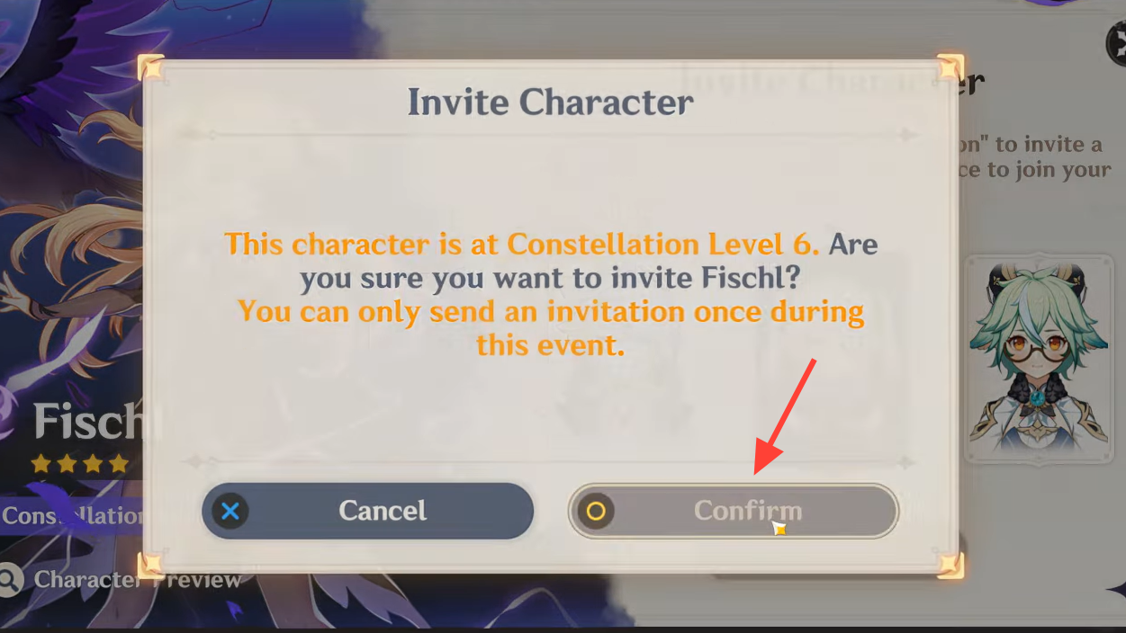 Step 3: Select your preferred character and confirm the invitation. If you already own them at constellation 6, the invitation converts into the usual starglitter compensation.
